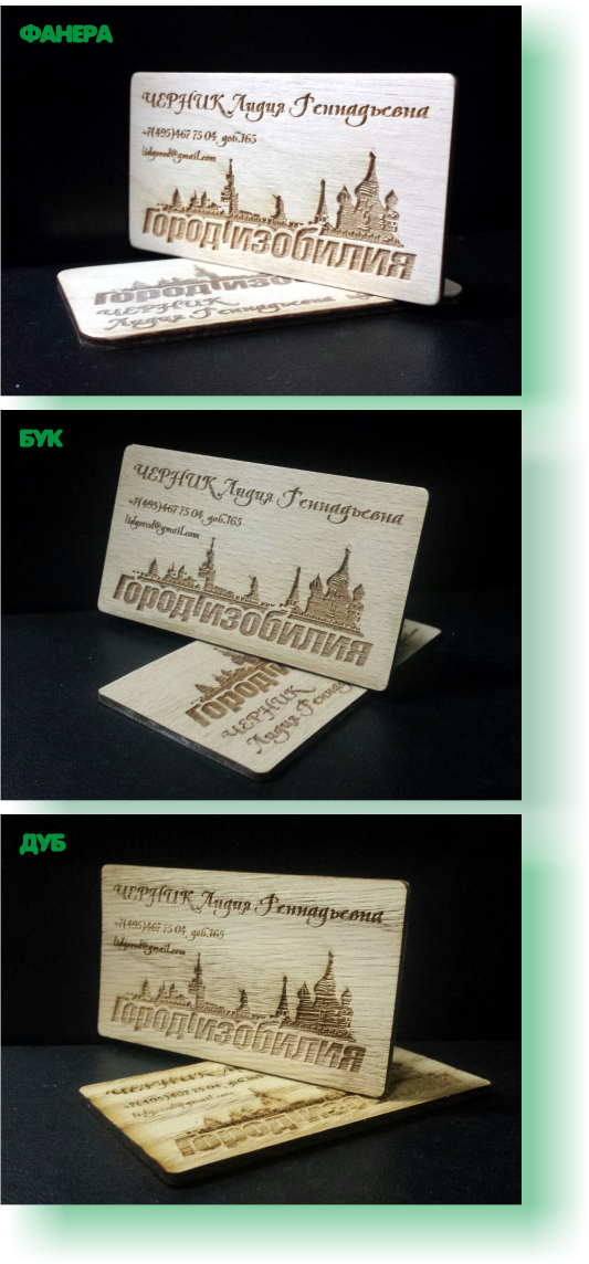 Таже изготавливаем деревянные визитки из фанеры толщиной 3-4 мм. Данная толщина позволяет наносить 3д гравировку и придавать изделиям рельефность.
